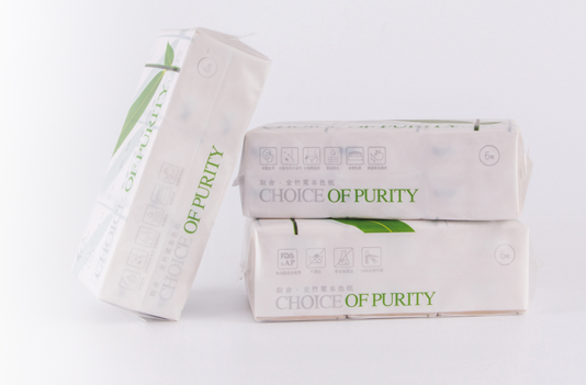 特性:采用精选100%天然原生竹浆,并经过超高温处理。洁净卫生,无添加,无漂白,手感细滑,吸水性强,无粉尘卫生卷纸